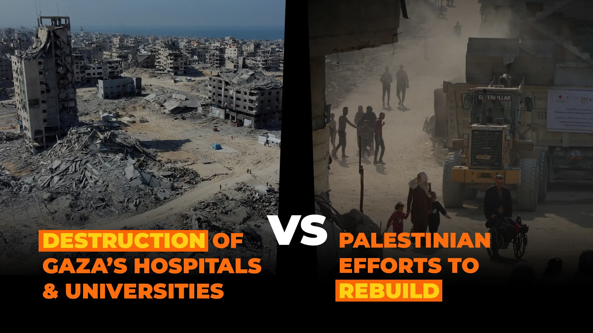 We compare and contrast Gaza’s destruction over the past two years with the ongoing Palestinian efforts to rebuild.