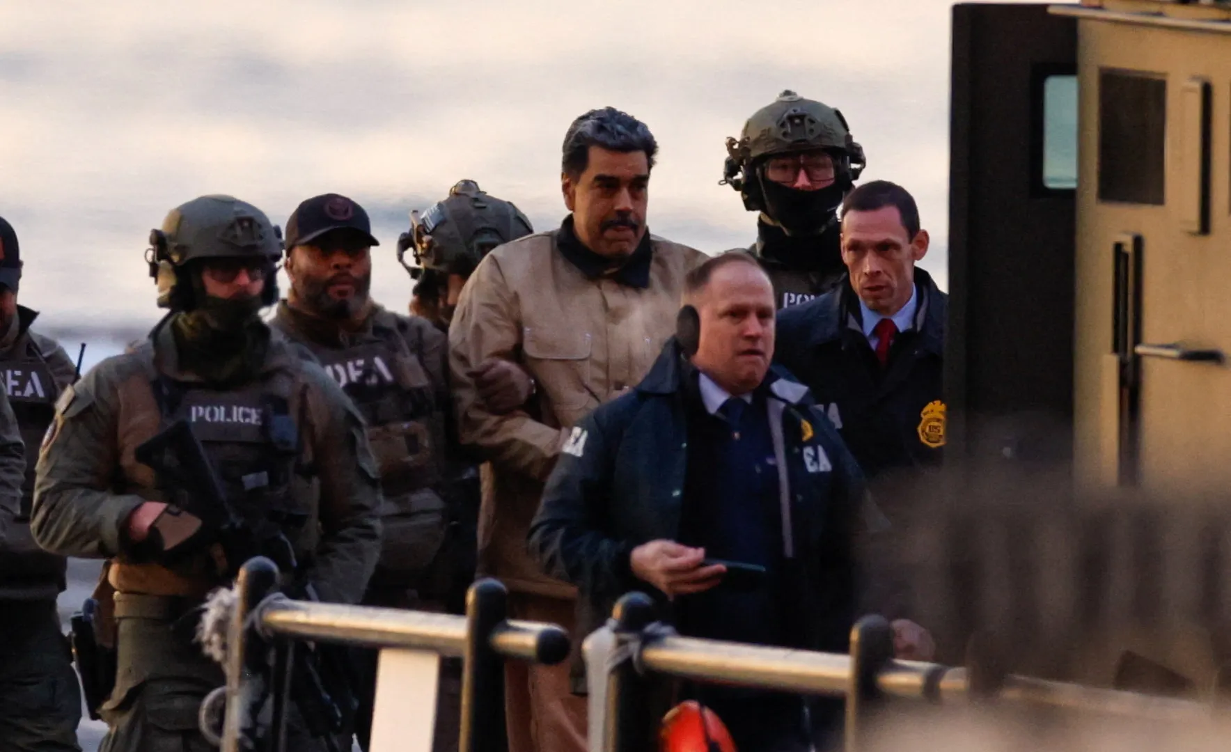Abducted Venezuelan leader Nicolas Maduro was spotted while he was transferred to a New York City courthouse for his first appearance after being taken by the US military on Saturday.