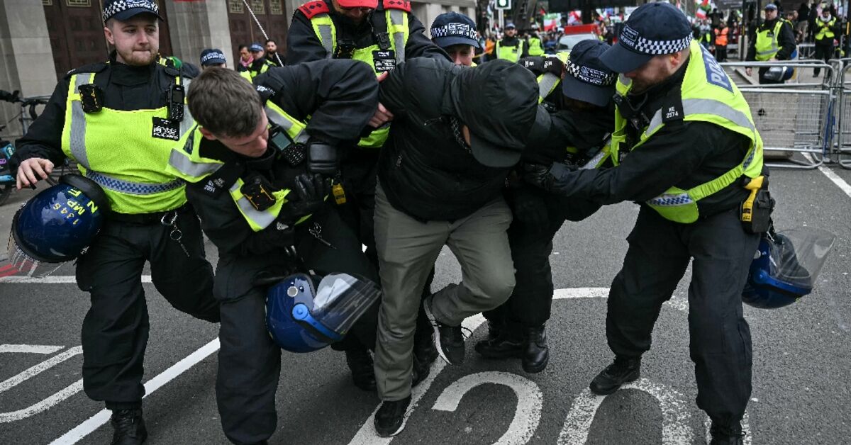 Hundreds of people turned out in London Sunday for a pro-Palestinian march banned by the government after police said it was organised by a group “supportive of the Iranian regime”.