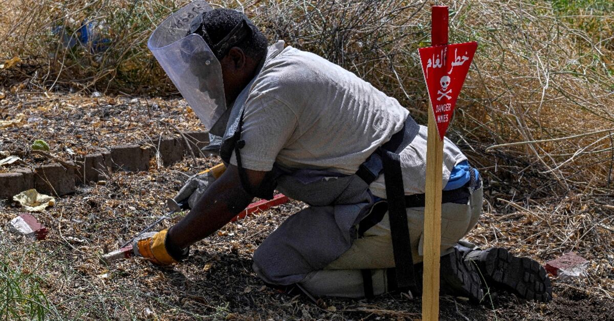 Bending low in the baking sun and sheathed in heavy protective gear, Hussein Idris sweeps a metal detector across a vast minefield in central Khartoum that was once a park beloved by local families.