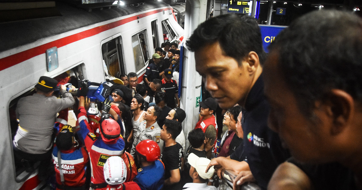 BEKASI, Indonesia — Rescuers finished removing victims from a damaged commuter train car Tuesday, confirming that the crash outside Indonesia’s capital killed 14 people, all of whom were women.